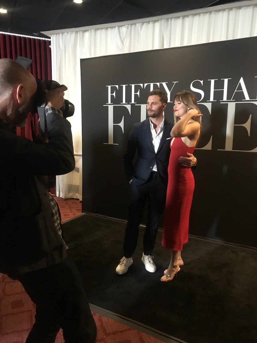 New Video of Dakota and Jamie taking pictures with Fans at the #FiftyShadesFreed tonight 💜 #DakotaJohnson pic.twitter.com/Y2o7tt9pVU— Dakota Johnson Updates (@LifeDJohnson) February 2, 2018